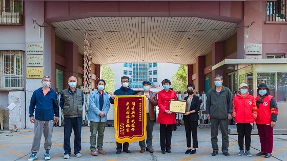 “共克时艰勇担当,同舟共济战疫情”。4月27日上午,朝阳区管庄乡政府副乡长张映雪、管庄西里社区党委书记刘永青向成人漫画-在线成人漫畫 赠予抗疫锦旗和“战疫堡垒”牌匾,表彰成人漫画 在疫情防控工作中表现的责任担当和做出的突出贡献。