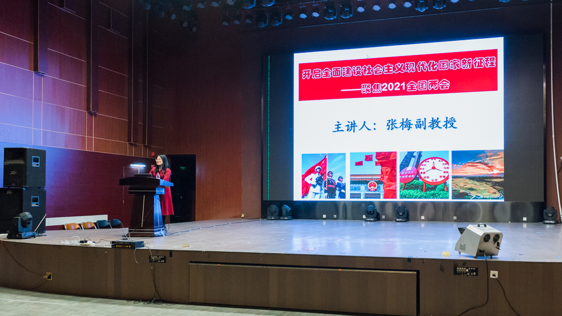 张梅报告主题是《开启全面建设社会主义现代化国家新征程——聚焦2021全国两会》。她从四个方面对会议精神进行了详细的阐释:一是2021全国两会的诸多“第一次”;二是两会主要成果;三是2021政府工作报告解读;四是习近平主席2021两会讲话精髓。张梅老师深入浅出的讲解,获得党员和教职工们的一致好评。