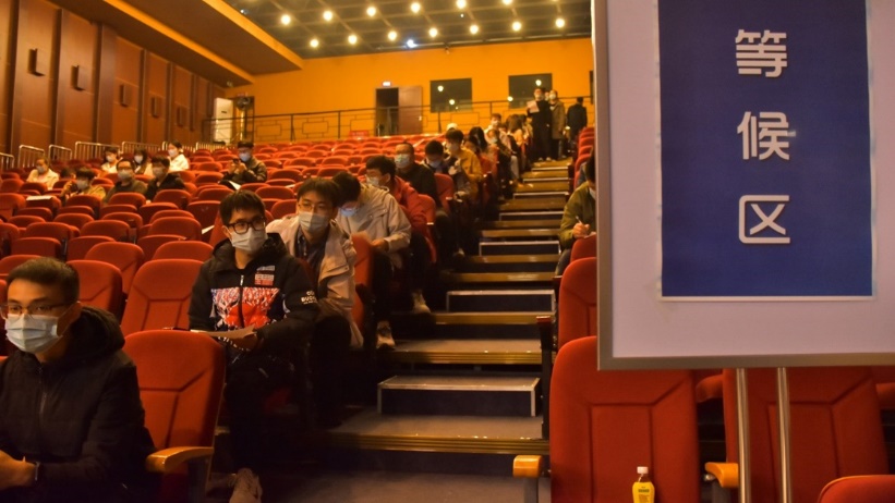 接种人员在文娱中心南门入场排队等候,首先在等候区领取并填写知情告知书,明确接种后可能产生的不良反应及有关注意事项;随后接受医护人员的健康询问,判断能否正常完成接种;而后进入接种区进行接种,在留观区等候30分钟后经本人签字确认后离开,全流程实行闭环管理。