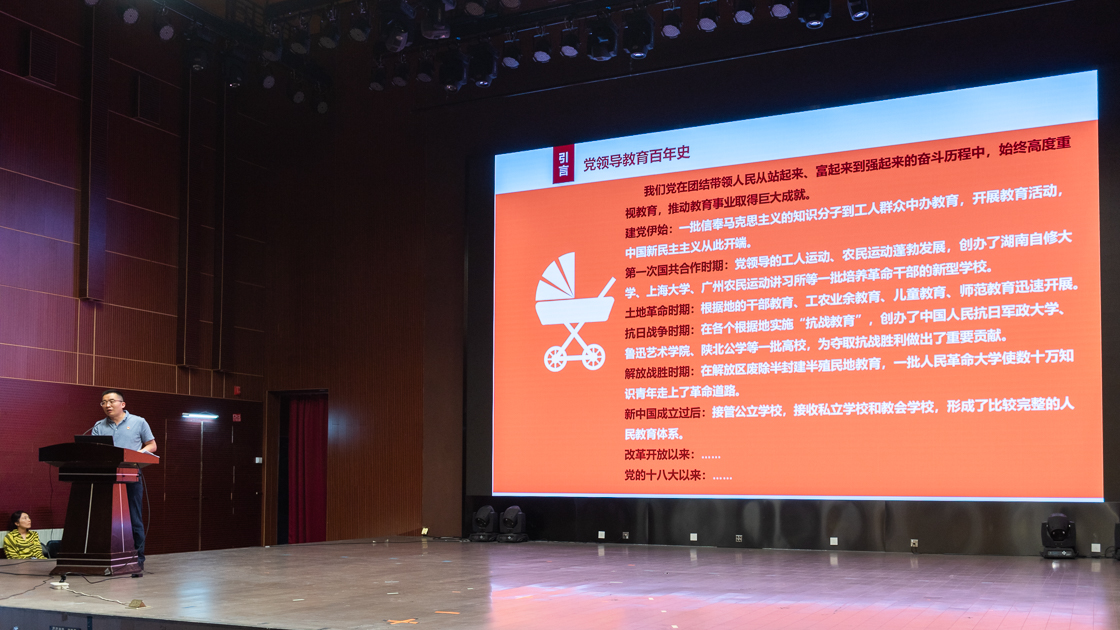 吕朝伟书记以《汲取精神力量,坚定跟党前行》为主题,给全体党员、教职工上党课。他讲到:中国共产党领导教育的百年历史取得了巨大成就,一代又一代教育工作者为中国共产党人的精神谱系源源不断地贡献着教育的智慧和力量。他从“求实”、“鼎立”、“创新”三个方面解读“北科精神”,用详实的数据、鲜活的事例,将北科精神有机融入党史学习教育之中,引导全体党员、教职工坚定理想信念,凝聚磅礴力量,砥砺奋进新征程。